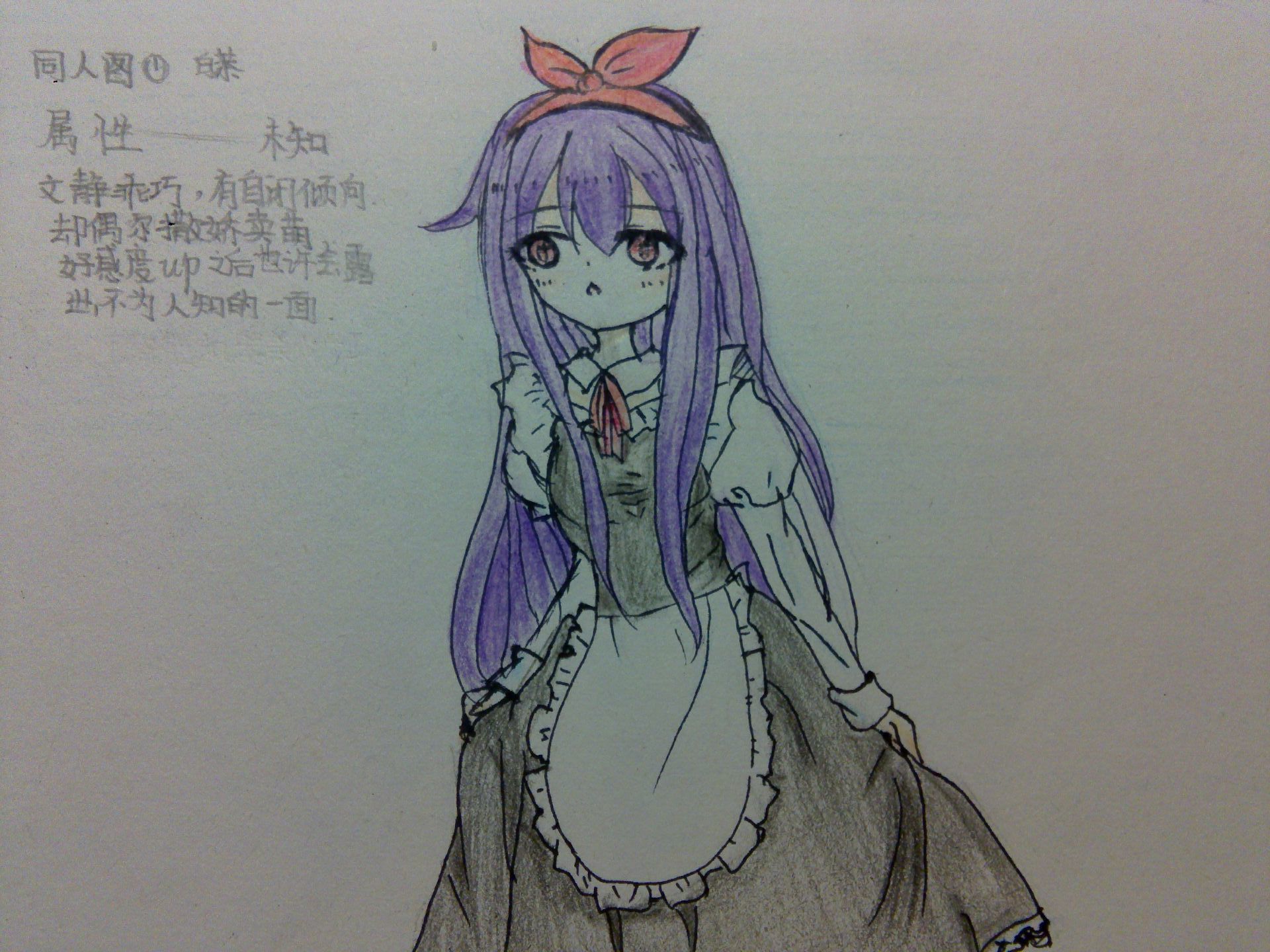 文静乖巧,蠢萌傲娇,容易害羞,不稳定。普通女仆装紫长直+红色头饰。